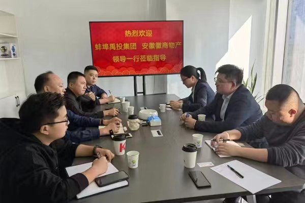 2022年10月17日,禹投國際經貿公司總經理陳永東、副總經理徐匯、部門主管李勛一行赴徽商物產考察調研,并就雙方未來的合作方向展開深入交流。