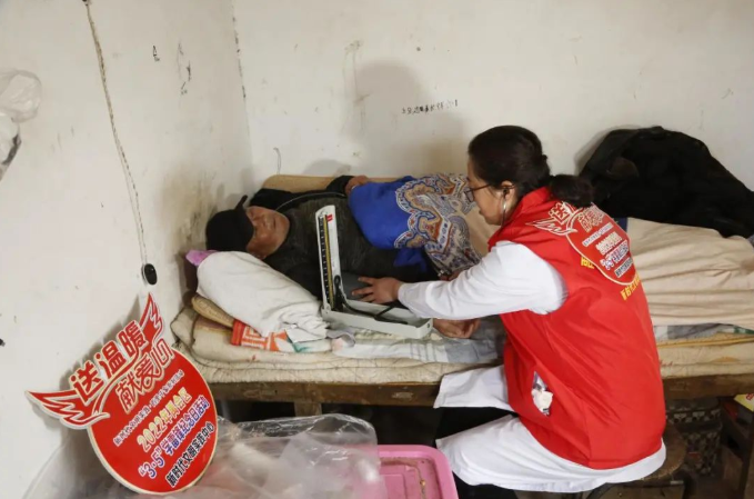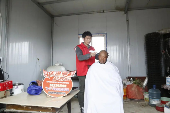 活動(dòng)中,部分單位的志愿者入戶為空巢老人和殘疾人理發(fā)、測量血壓、推拿按摩。